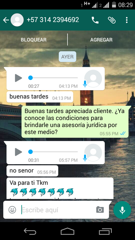 La historia es la siguiente: Una persona me envía un mensaje de voz a mi whatsapp preguntándome por el servicio para salir de Datacrédito, pero para no pagar la consulta me pregunta si es posible hacerlo en su caso.