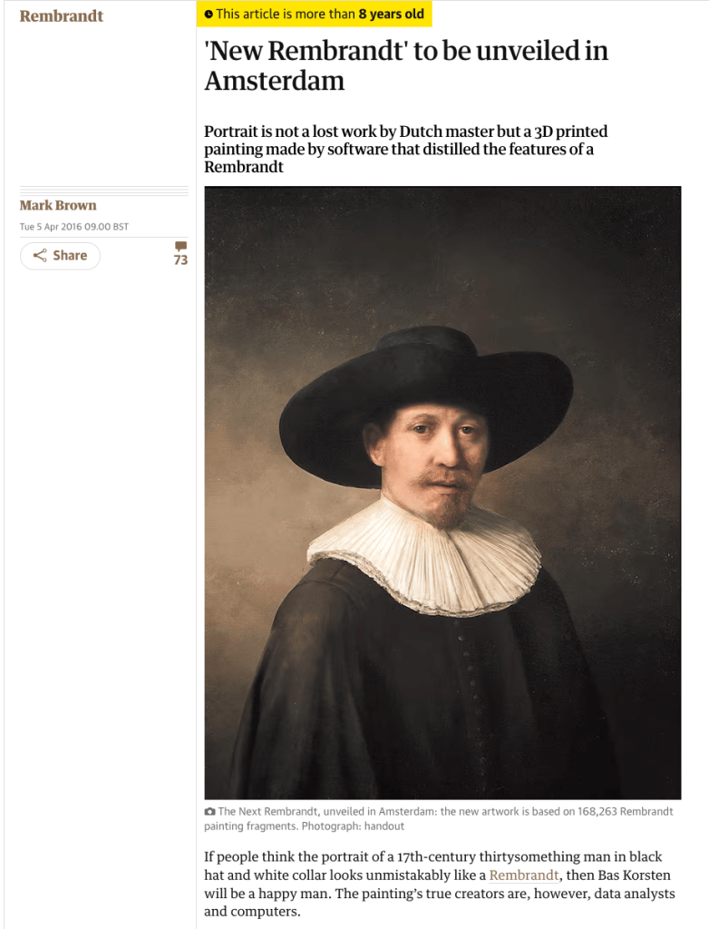 Esta última pregunta no es un asunto menor, ya que una IA puede replicar el estilo de un autor, pero crear obras nuevas. Miremos por ejemplo lo que una IA hizo con un cuadro de Rembrandt, cuyo ejemplo lo pueden consultar aquí.