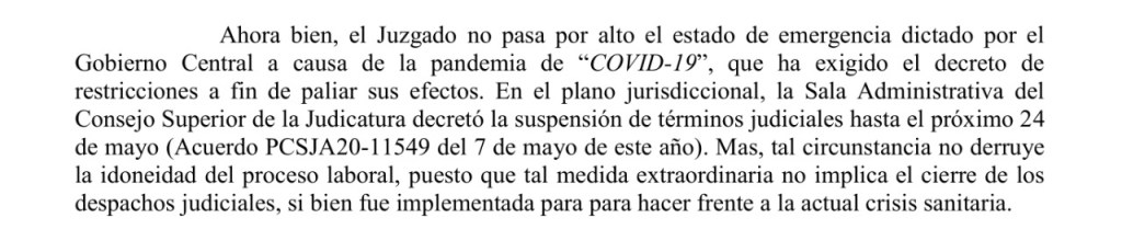 Entonces…. ¿Siempre se han podido radicar otras demandas? Porque si bien es cierto los juzgados están cerrados en la práctica, el Juzgado Séptimo Civil Municipal de Cali tiene razón en que los acuerdos del Consejo Superior de la Judicatura sólo suspenden términos, más nunca ordena el cierre de despachos judiciales (cosa que si hizo supernotariado expresamente). Y si partimos del hecho de que estamos en una pandemia, que obligó a los empleados de los despachos judiciales a teletrabajar, más no a dejar de hacerlo, esta afirmación se torna interesante.