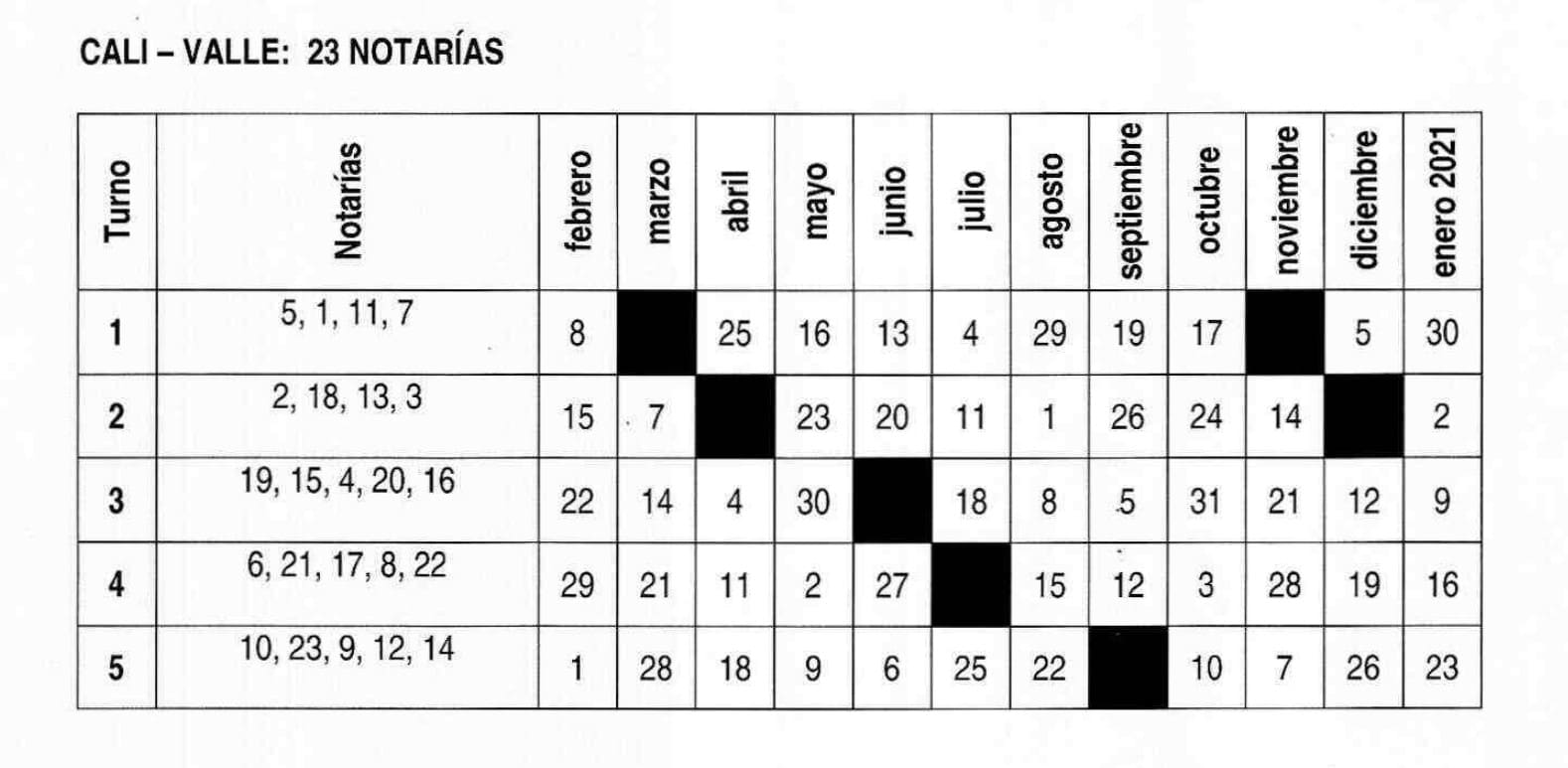 notarias de turno Cali 2020