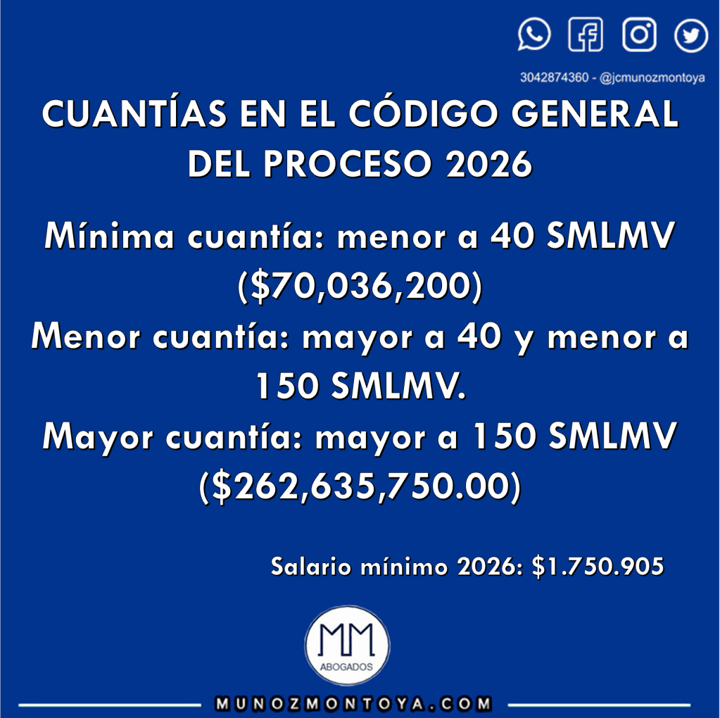 Para no dar más vueltas al asunto, estas serán las nuevas cuantías según el C.G.P, Art. 25: